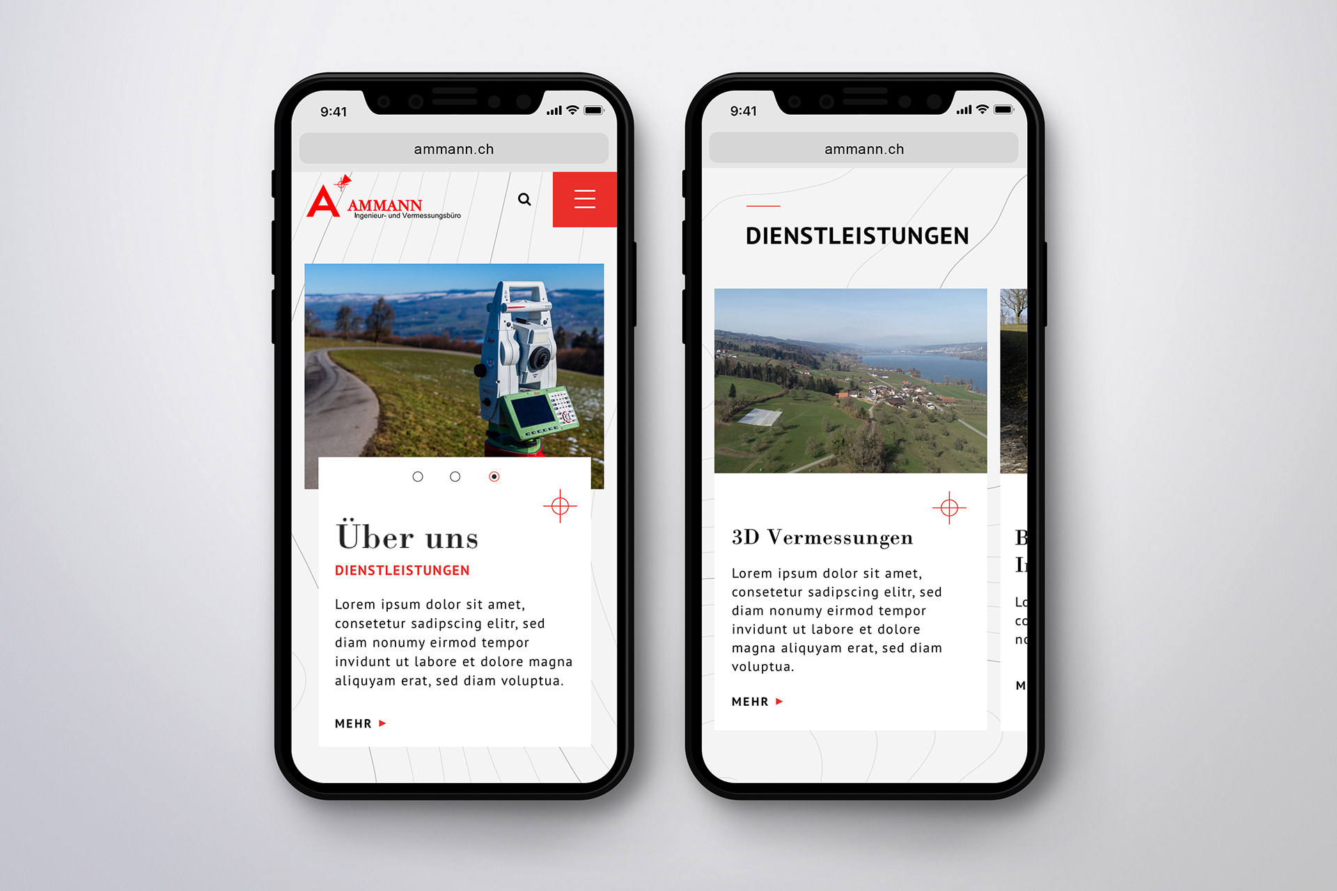 Precision and knowhow are in the fore of this new performance of the survey company Ingenieur Ammann. With the contour in the background of the website a continuous keyvisual arises. In spite of the uploaded graphics in the background the website is impressive for it’s short loading time.