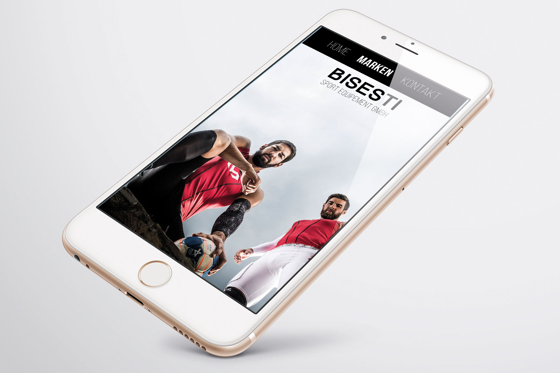 The B2B-sport distribution company Bisesti is in charge of eight brands who each should have a prominent position on the welcome page. Therefore the guidance of the menu received a secondary role. The product pages of each manufacturer show a high level of details up to 3D-model.