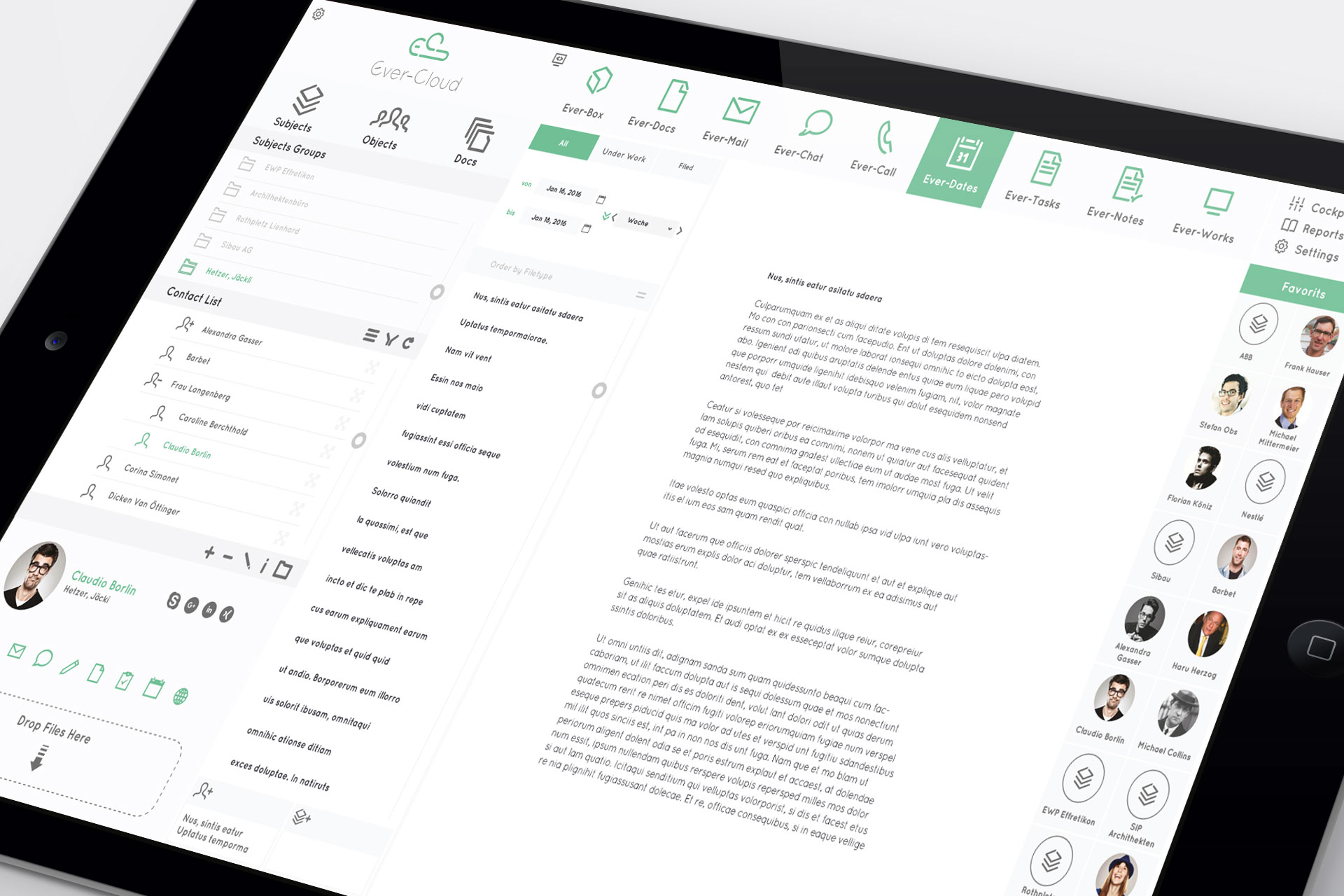 Evercloud is a project management software for small and medium-sized enterprises and colaboration teams. The startup had already placed the technical corner stones on which I was permitted to build the graphic user inferface. The project included the logo and a basic Corporate Design. The logo combines the cloud and the two initials of the company’s name.