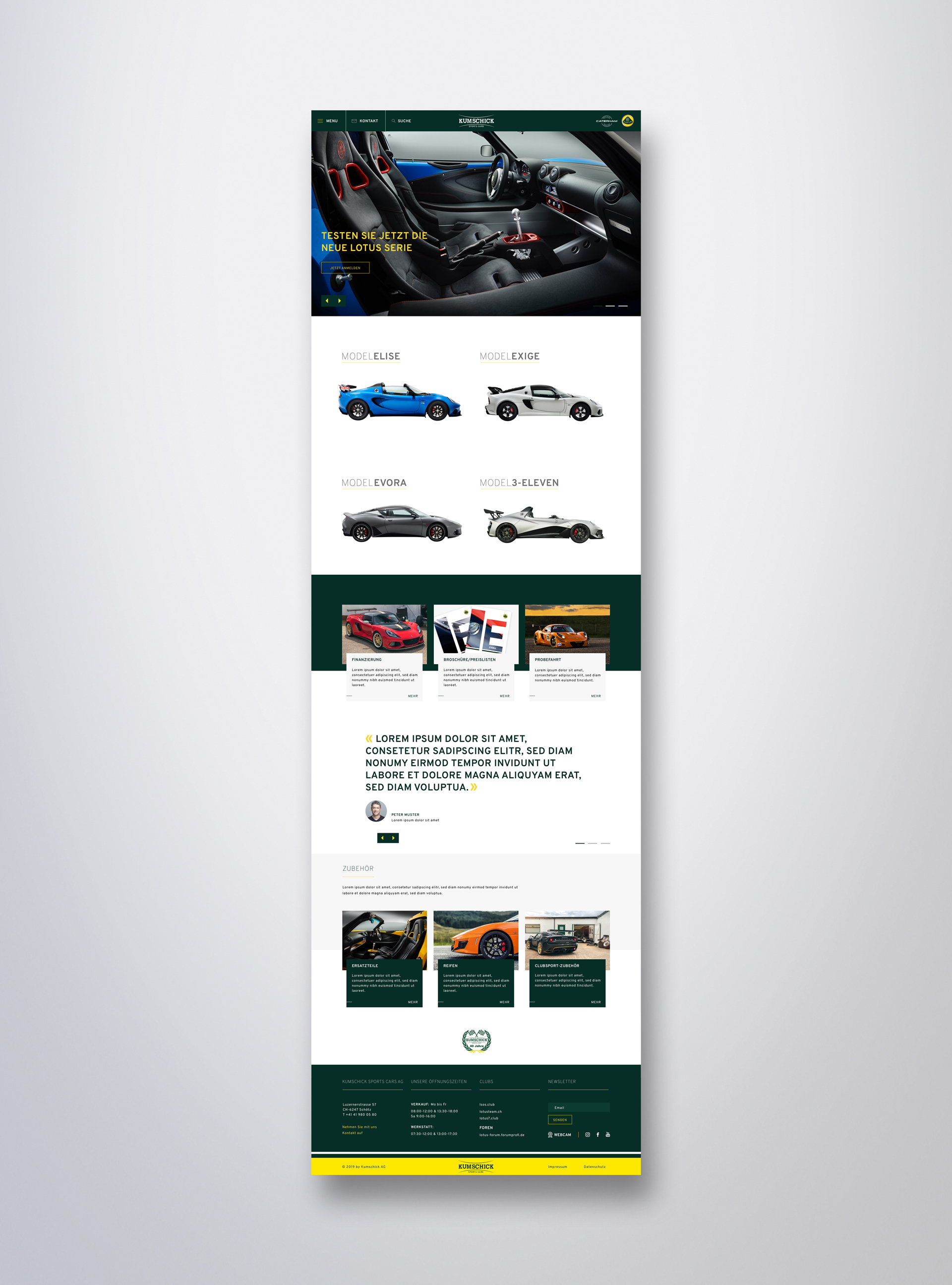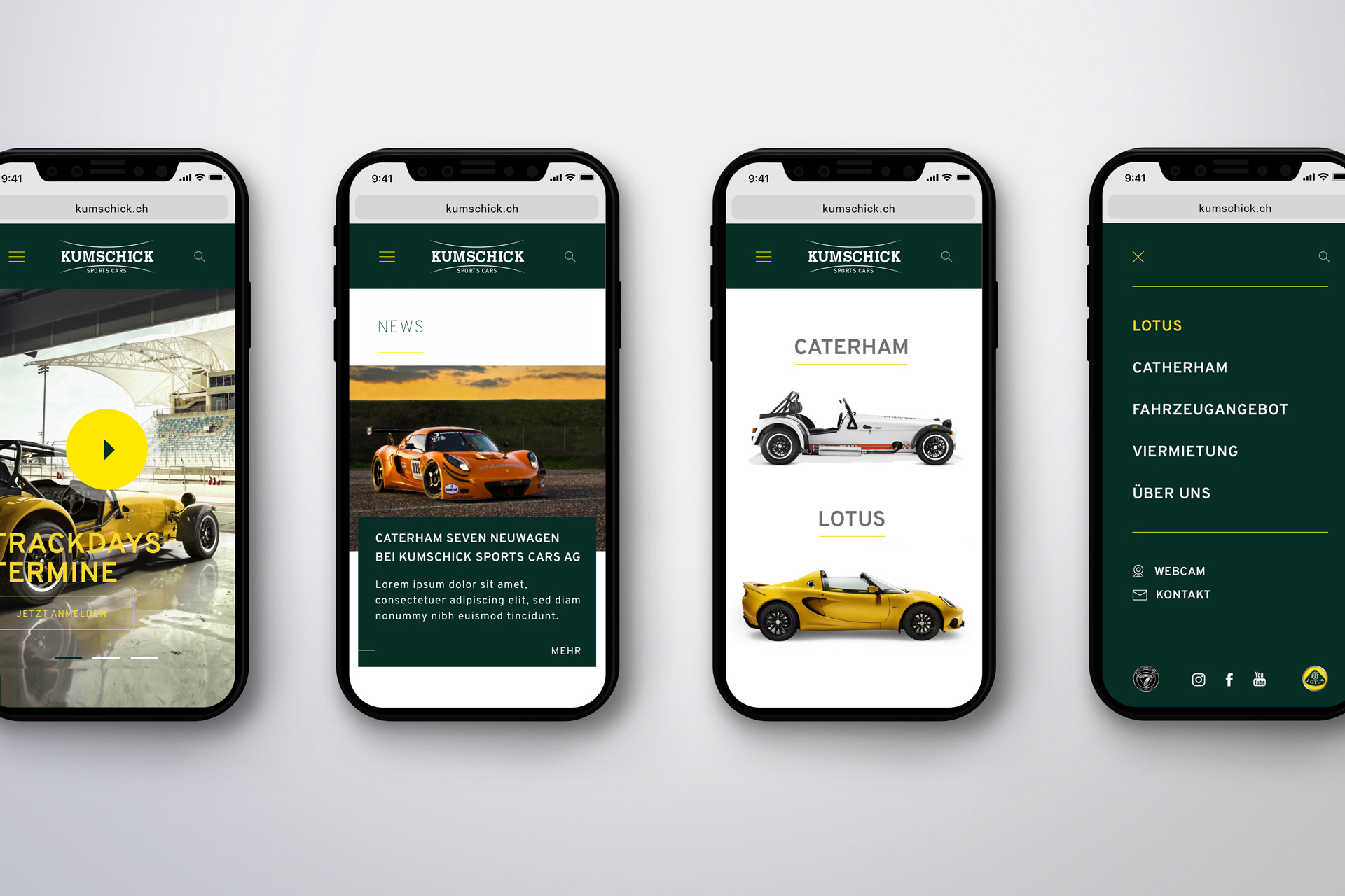 Kumschick is the main importer of Lotus and Caterham in Switzerland. The company would like to implement an original appearance, reclined with the Corporate Designs of Caterham and Lotus.