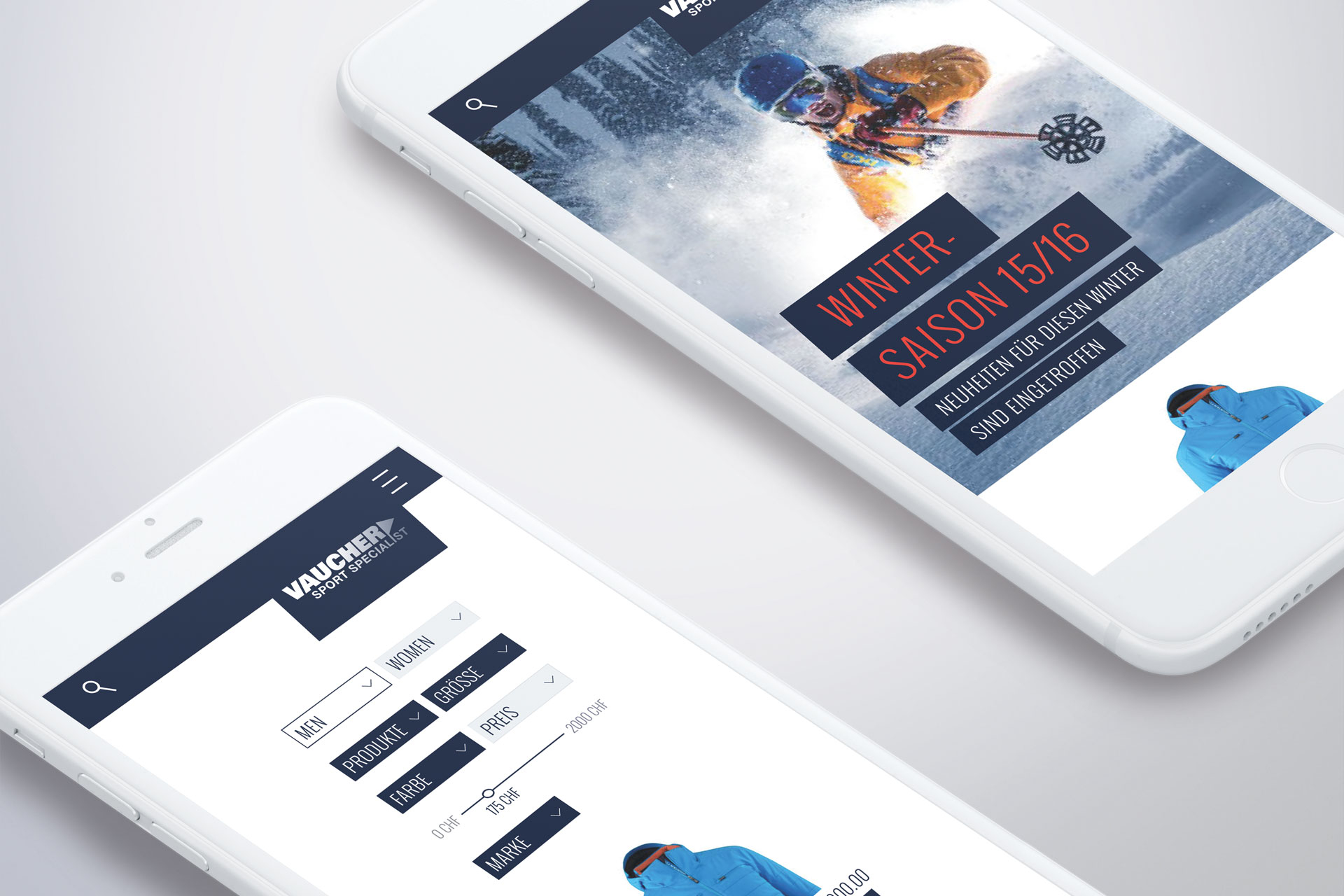 Vaucher is an online sports shop that was to be revised. The works shown are drafts of what the navigation and look of a sports page looked like for me in 2016. It was important for me to work with many moods on the homepage, which establish a connection to the products. Navigation was the main issue for creating an effective shop. I believe that the search parameters are essential for the purchase process.